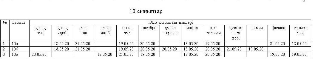 » » ІV тоқсан ТЖБ алу кестесі 10 сыныптар