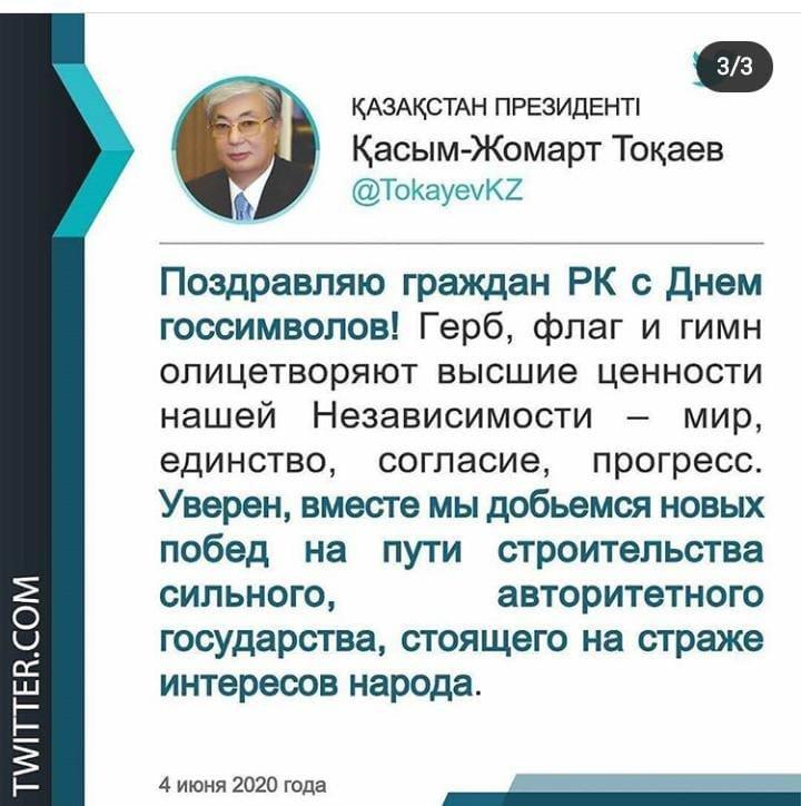 Тәуелсіз Қазақстанның мемлекеттік рәміздері осыдан 27 жыл бұрын, 4 маусым күні бекітілген болатын. Содан бері аталмыш датаны барша қазақстандықтар айтулы мереке ретінде атап өтіп келеді. Мемлекеттік Ту, Мемлекеттік Елтаңба және Мемлекеттік Әнұран. » Кенен Әзірбаев атындағы №41 орта мектебі