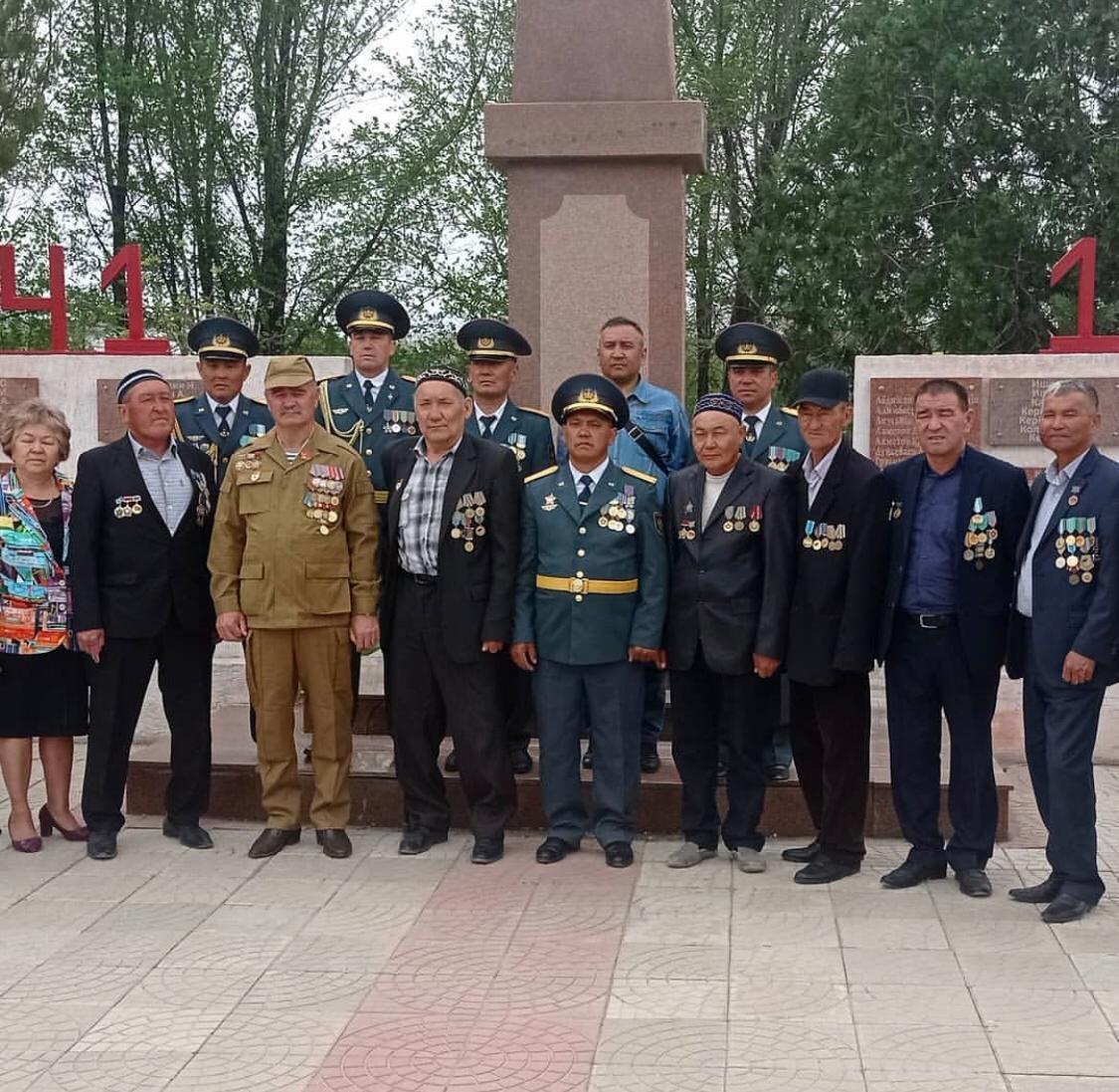 ҰОС ардагерлеріне арналған «Еске алу Вахтасы» ұранымен АӘД пән мұғалімі 10 сынып оқушыларымен ауылдың орталық алаңында сап түзеу жаттығуларын жүргізіп, соғыс заманында майдан кешкен жауынгерлерге, халық батырларына арнап гүл шоқтарын қойды. » Кенен Әзірбаев атындағы №41 орта мектебі