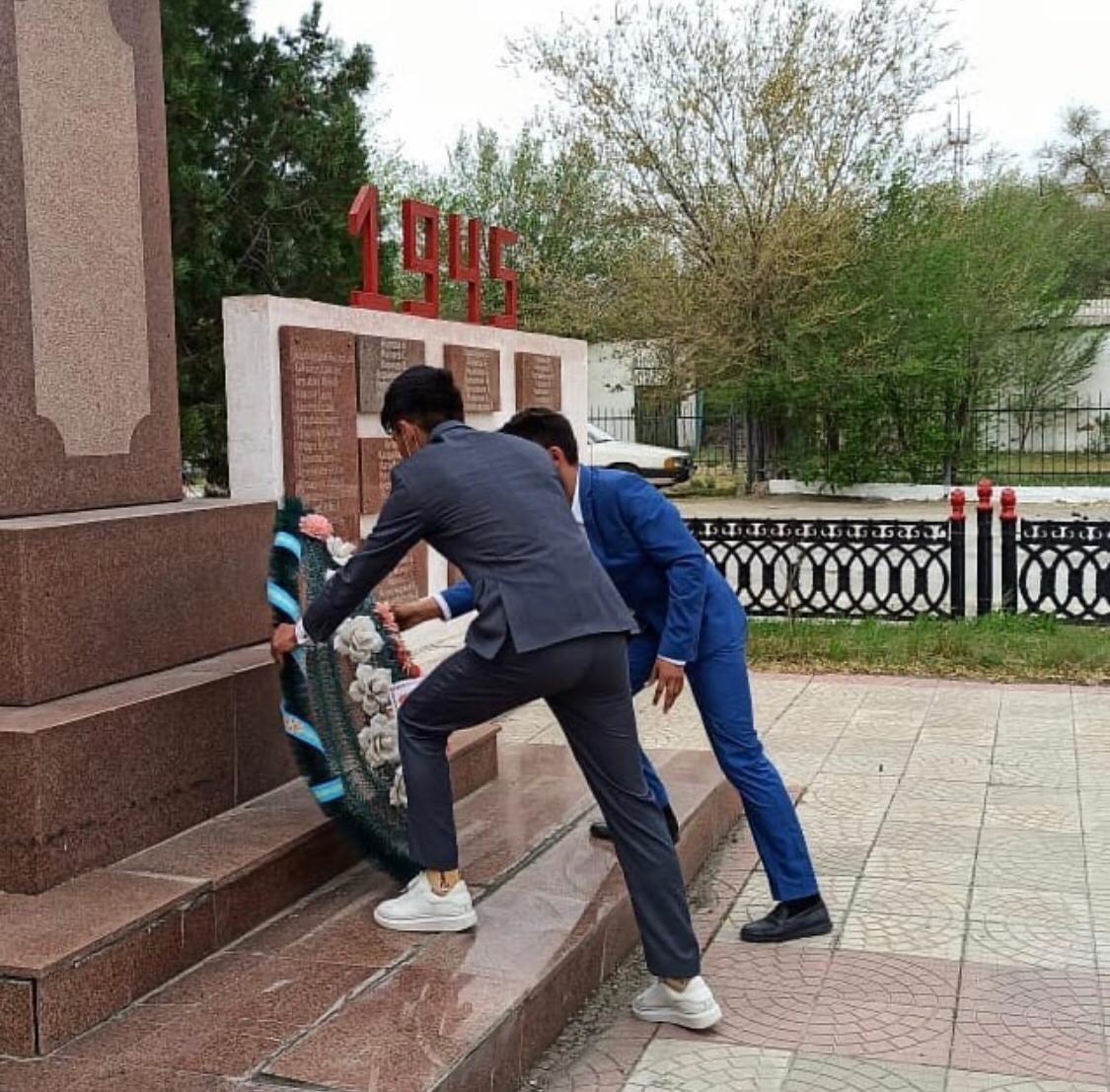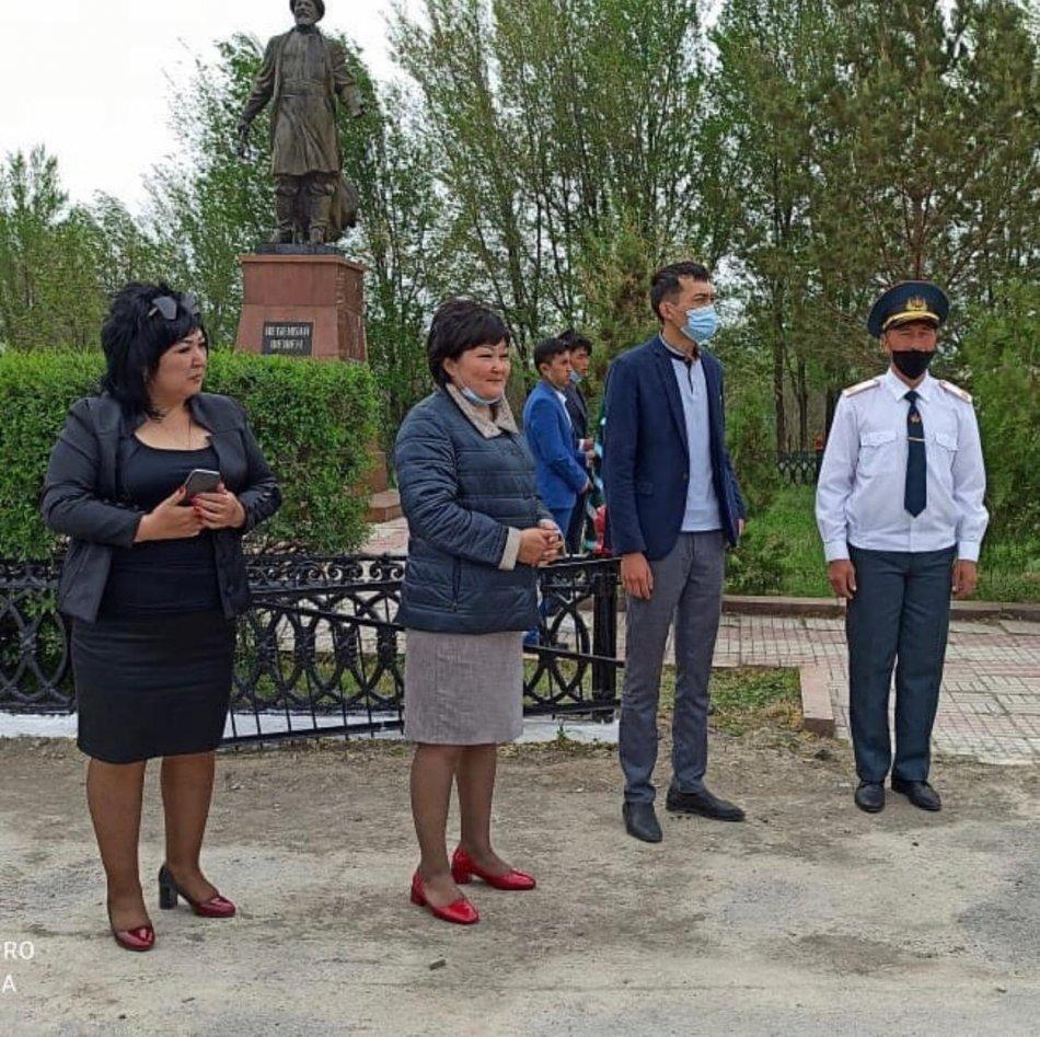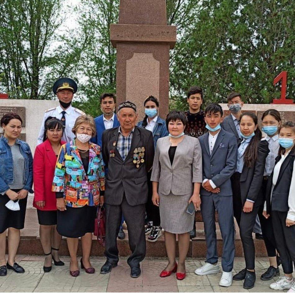ҰОС ардагерлеріне арналған «Еске алу Вахтасы» ұранымен АӘД пән мұғалімі 10 сынып оқушыларымен ауылдың орталық алаңында сап түзеу жаттығуларын жүргізіп, соғыс заманында майдан кешкен жауынгерлерге, халық батырларына арнап гүл шоқтарын қойды.