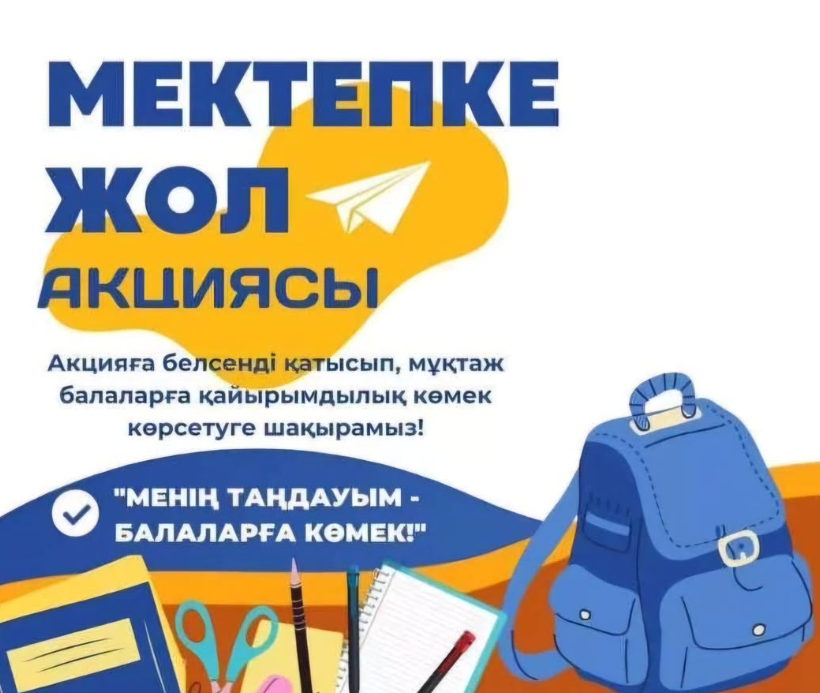 Білім беру ұйымдарында 2024 жылдың 1 тамызы мен 30 қыркүйек күндері аралығында "Мектепке жол" жалпы республикалық қайырымдылық акциясы ұйымдастырылады.