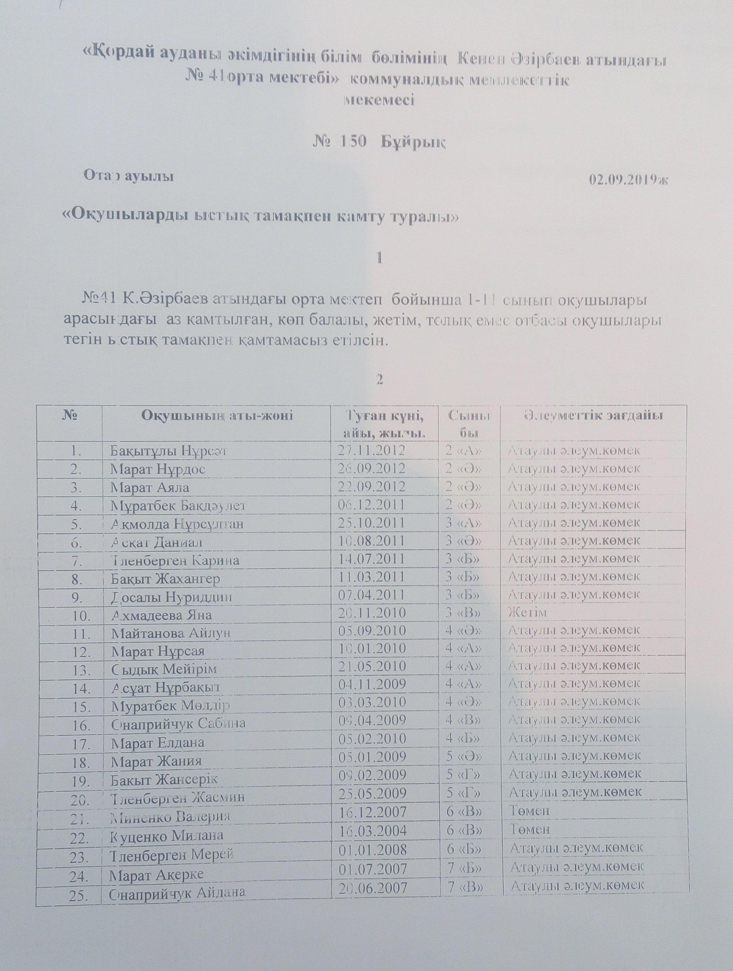 26 февраль 2020 0 1 2 3 4 5 Тегін және жеңілдетілген тамақтандыру "Жалпы білім беретін мектептердегі білім алушылар мен тәрбиеленушілердің жекеленген тамақтандыруды ұйымдастыру"